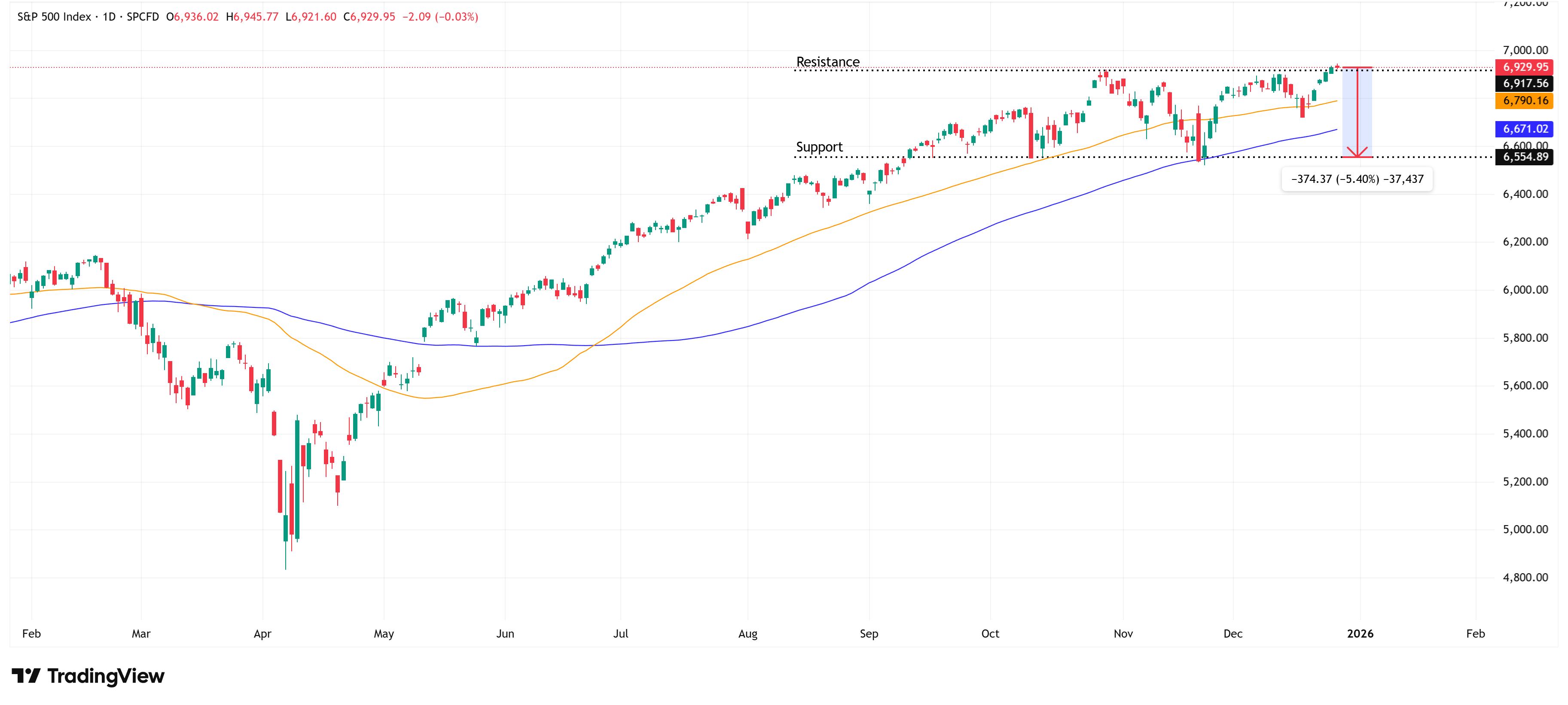Based solely on technical chart, SPX is hovering just slightly above its previous high of 6,917 points (potential resistance). Since the market don’t move in straight line, I think there will be a pullback – how much? I was hoping for -5.4%, given how expensive the market is right now.