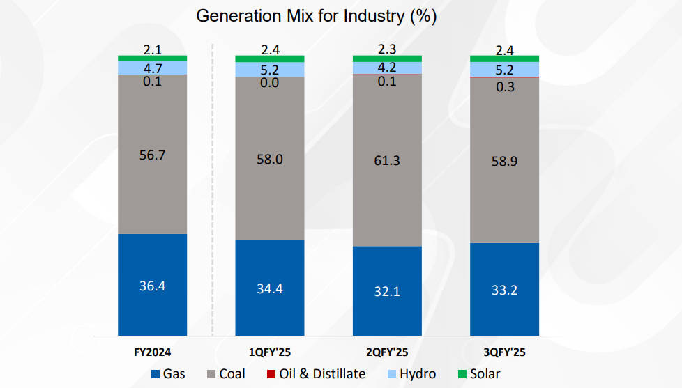 Below is the weightage of each energy sources used by TNB to generate electricity as of 3Q25: