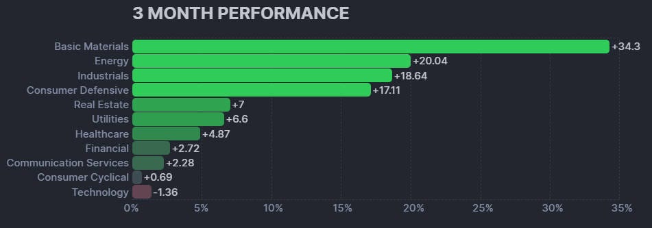 Sector such as basic materials, energy, industrials and consumer defensive were all being favored by the market. In my opinion, it was a healthy pullback but it was not big enough.